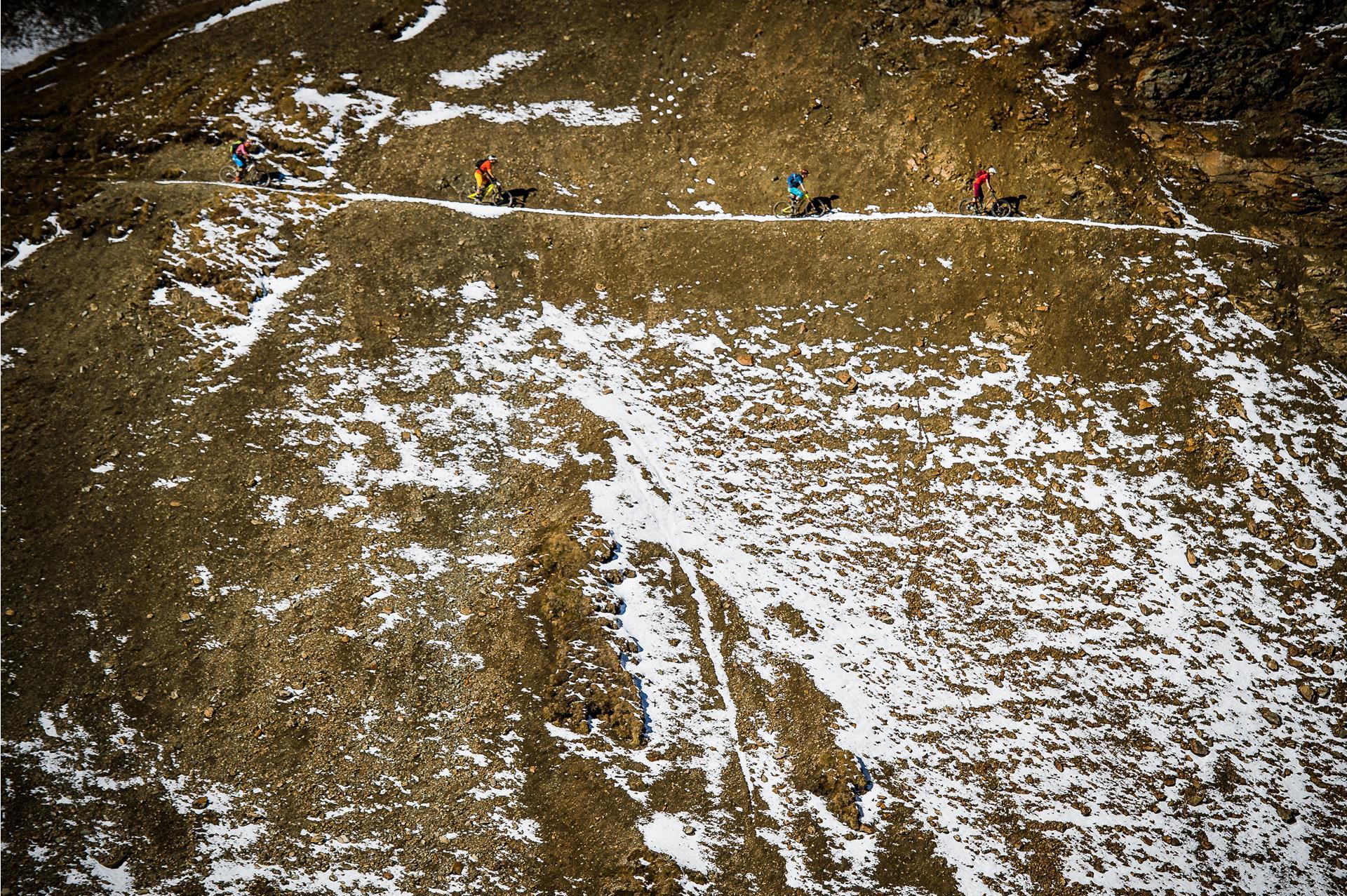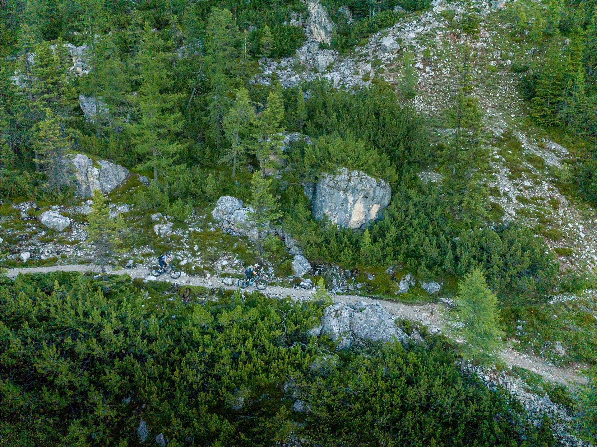 S3 ist kein Trail mehr, der sich einfach runterrollen lässt. Verblockte Passagen mit großen Felsbrocken und verschachtelten Wurzeln, hohe Stufen, Spitzkehren, knifflige Schrägfahrten – Entspannung gibt es hier selten. Rutschiger Untergrund und loses Geröll sind die Regel, Steilheiten jenseits der 70 % bzw. 35° keine Ausnahme. Schwarze Trails in Südtirol verlangen sehr gute Bike-Beherrschung und konstante Konzentration.