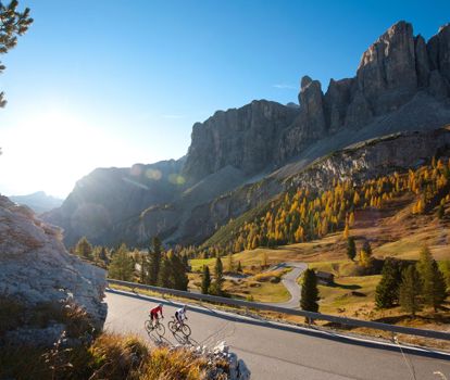 The best season for a cycling holiday in the Dolomites, in Val Gardena & Alta Badia, Pustertal/Val Pusteria and Eggental/Val d'Ega is summer. However, we generally recommend the months of June and September to avoid heavy traffic.